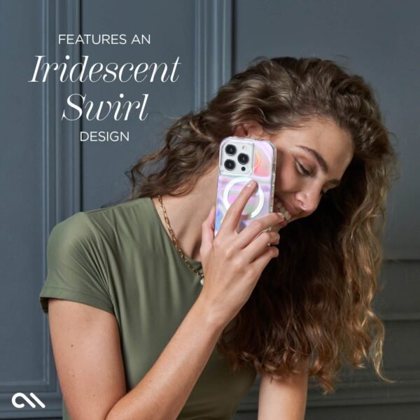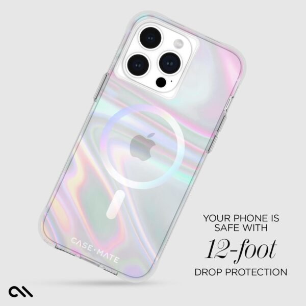 iP 15 Pro Max用Soap Bubble™ MagSafe Phone Caseは、動くたびに色合いが変わる虹色の渦巻きデザインが特徴です!強力なマグネットが内蔵されているため、MagSafeアクセサリや充電を簡単に行うことができます。