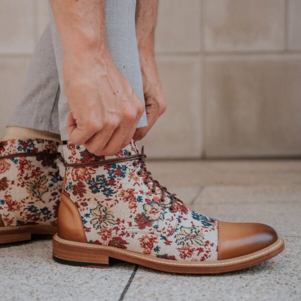 TAFTのジャック・イン・フローレンスは、メンズ・ブーツに大胆な新しいスタイルを与えるために作られた。TAFTは履き心地の良さを追求し、花柄ジャカード織りのアッパーで長持ちするようにデザインしました。