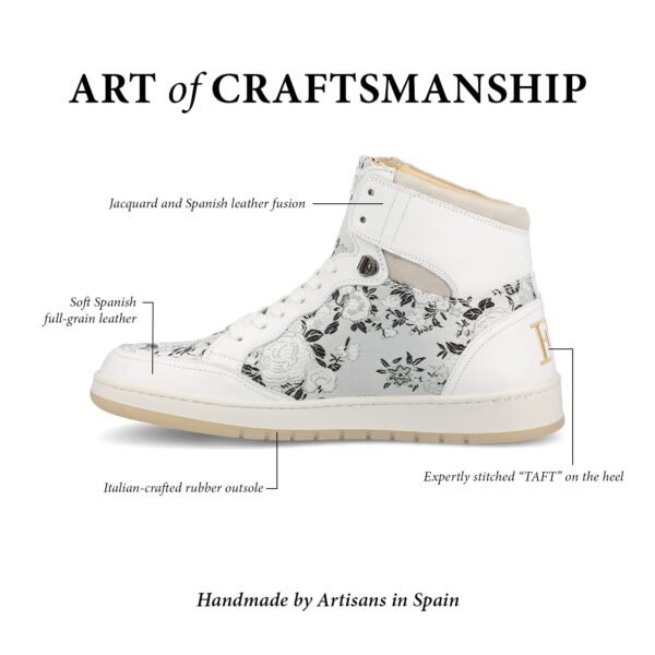 - UPPER: TAFT’s custom Eden Blanc cotton jacquard combined with Spanish Calfskin